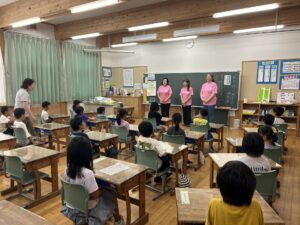 安全を願い、二ツ井小学校の1年生全員に手作りのお守りを贈りました。